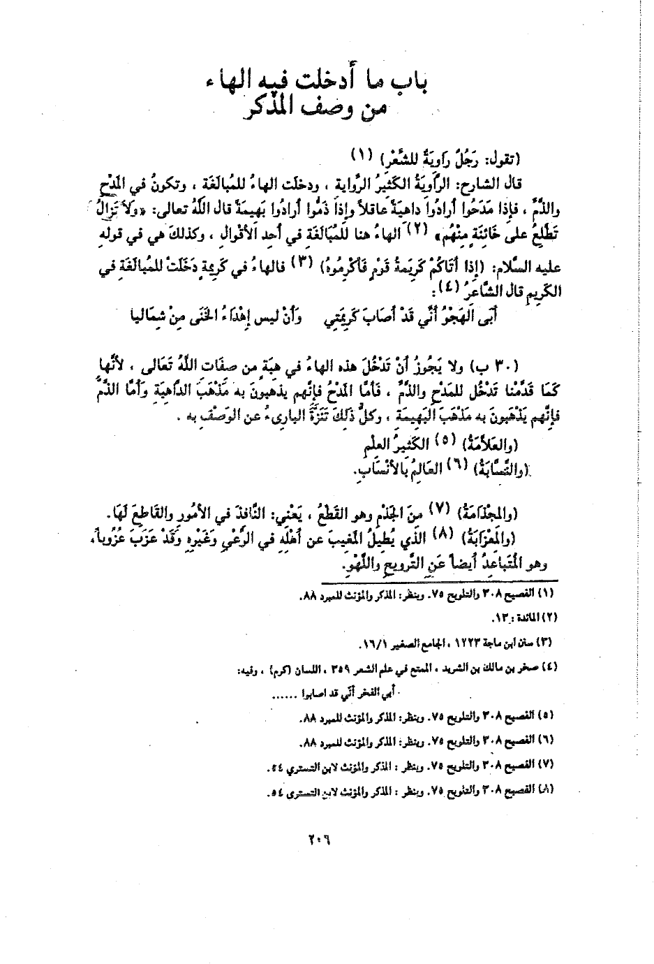 (30 ب) ولا يجوز أن تدخل هذه الهاء في هبة من صفات الله تعالى؛ لأنها كما قدمنا تدخل للمدح والذم، فأما المدح فإنهم يذهبون به مذهب الداهية، وأما الذم فإنهم يذهبون به مذهب البهيمة، وكل ذلك تنزه البارئ عن الوصف به.