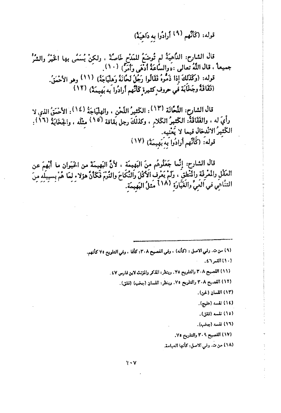 قال الشارح: إنما جعلوهم من البهيمة؛ لأن البهيمة من الحيوان من أبهم عن العقل والمعرفة والمنطق، ولم يعرف الأكل والنكاح والنوم فكان هؤلاء لما هم بسبيله من التناهي في العي والغبارة مثل البهيمة.