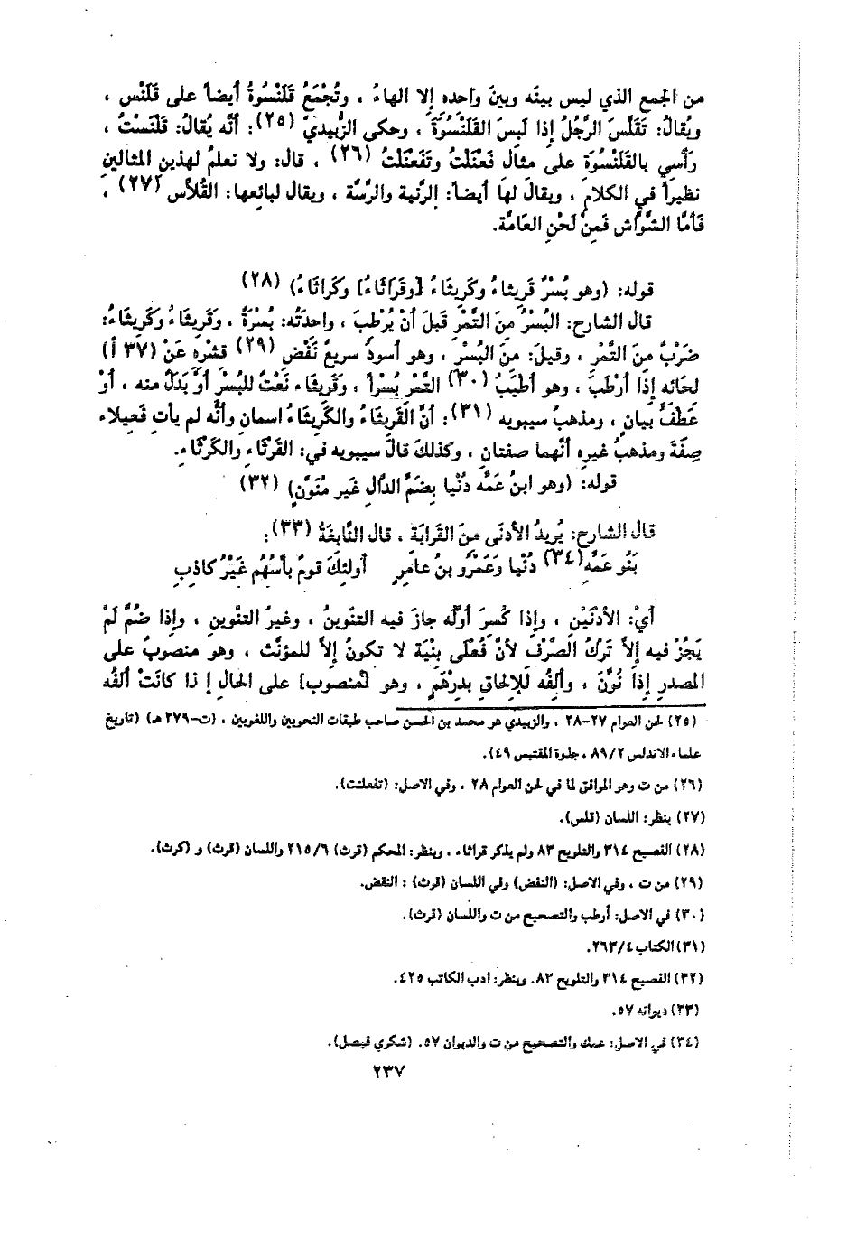 قال الشارح: البسر من التمر قبل أن يرطب، واحدته: بسرة، وقريثاء وكريثاء: ضرب من التمر، وقيل: من البسر، وهو أسود سريع نفض قشره عن (37 أ) لحائه إذا أرطب، وهو أطيب التمر بسرًا، وقريثاء نعت للبسر أو بدل منه، أو عطف بيان، ومذهب سيبويه: أن القريثاء والكريثاء اسمان وأنه لم يأت فعيلاء صفة ومذهب غيره أنهما صفتان، وكذلك قال سيبويه في: القرثاء والكرثاء.