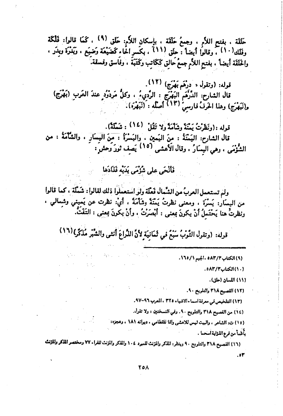قوله: (وتقول الثوب سبع في ثمانية لأن الذراع أنثى والشبر مذكر)