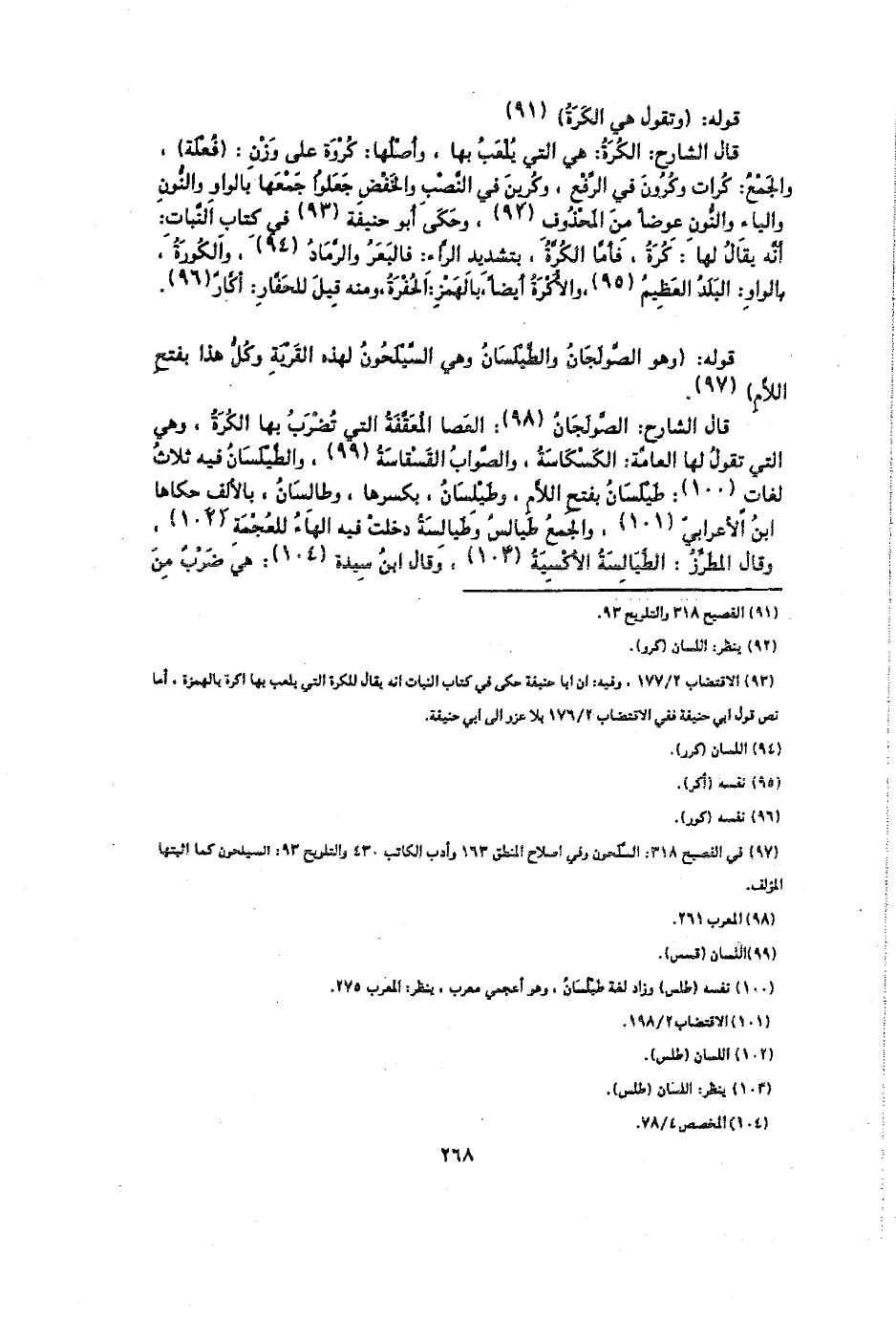 قال الشارح: الصولجان: العصا المعقفة التي تصرب بها الكوة، وهي التي تقول لها العامة: الكسكاسة، والصواب القسقاسة، والطيلسان فيه ثلاث لغات: طيلسان بفتح اللام، وطيلسان، بكسرها، وطالسان، بالألف حكاها ابن الأعرابي، والجمع طيالس وطيالسة دخلت فيها الهاء للعجمة، وقال المطرز: الطيالسة الأكسية، وقال ابن سيدة: هي ضرب من