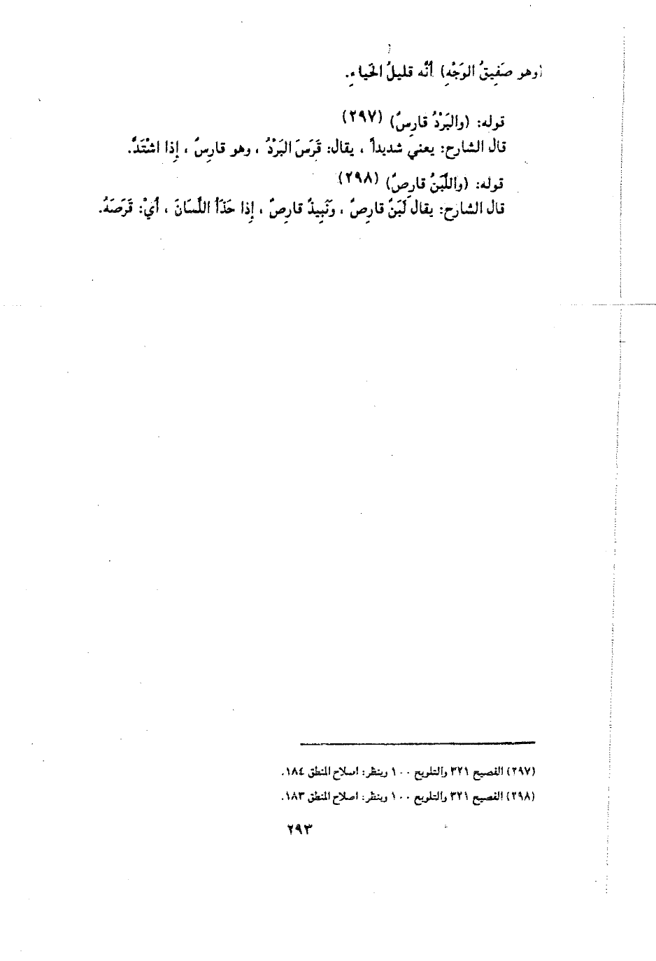 قال الشارح: يعني شديدا، يقال: قرس البرد، وهو قارس، إذا اشتد.