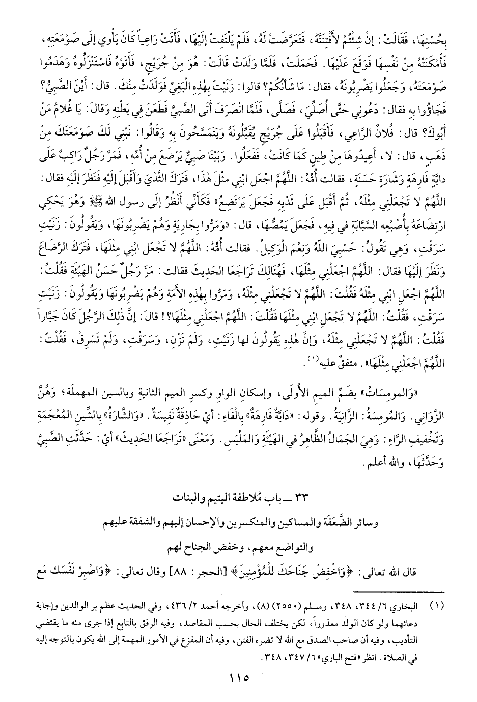 33- باب ملاطفة اليتيم والبنات وسائر الضَّعَفة والمساكين والمنكسرين والإِحسان إليهم والشفقة عليهم والتواضع معهم وخفض الجناح لهم