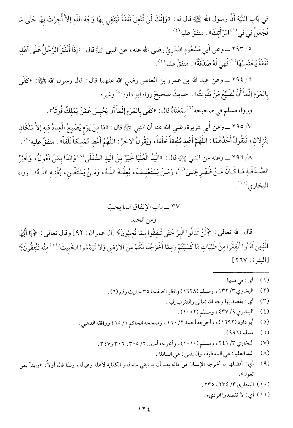 5/293- وعن أَبي مَسْعُودٍ الْبَدرِيِّ رضي اللَّه عنه، عن النَّبيّ صَلّى اللهُ عَلَيْهِ وسَلَّم قَالَ: "إِذَا أَنْفَقَ الرَّجُلُ عَلَى أَهْلِهِ نفقَةً يحتَسبُها فَهِي لَهُ صدقَةٌ" متفقٌ عَلَيهِ.