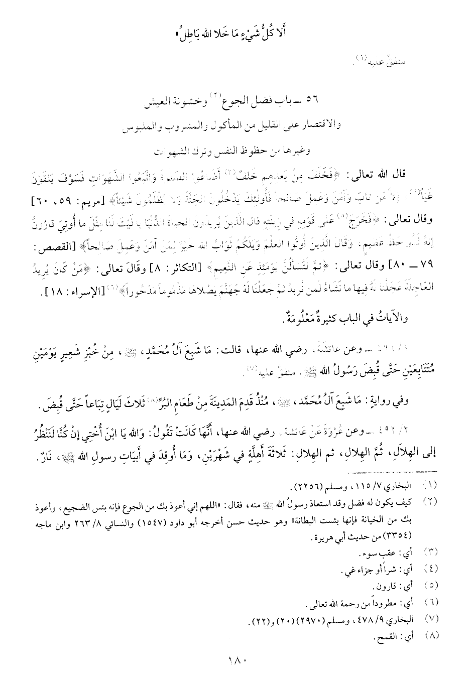 56-باب فضل الجوع وخشونة العيش والاقتصار عَلَى القليل من المأكول والمشروب والملبوس وغيرها من حظوظ النفس وترك الشهوات
