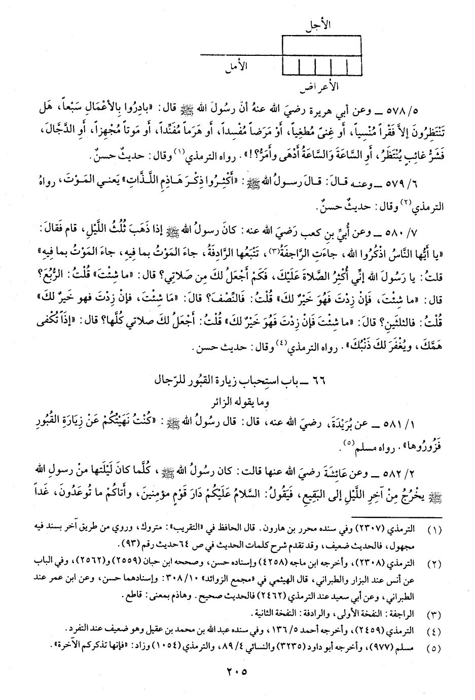 6/579- وعنه قالَ: قالَ رسولُ اللَّه صَلّى اللهُ عَلَيْهِ وسَلَّم:" أَكْثِرُوا ذِكْرَ هَاذِمِ اللَّذَّاتِ" يَعني المَوْتَ، رواه الترمذي وقال: حديثٌ حسنٌ.