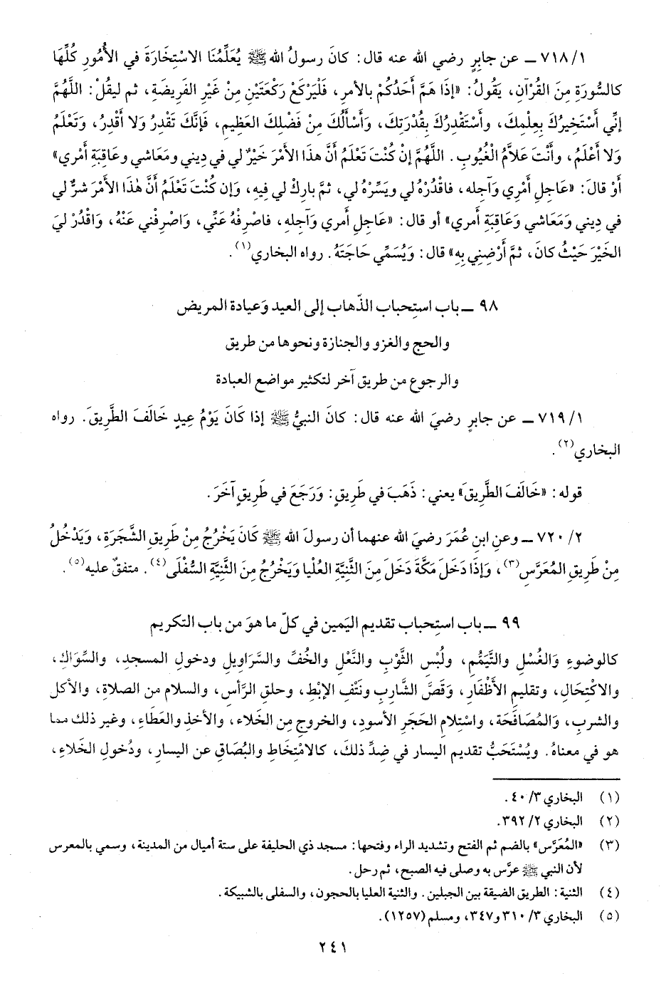 1/719- عن جابرٍ رضيَ اللَّه عنه قَالَ: كانَ النبيُّ صَلّى اللهُ عَلَيْهِ وسَلَّم إِذا كَانَ يَوْمُ عِيدٍ خَالَفَ الطَّرِيقَ. رواه البخاري.