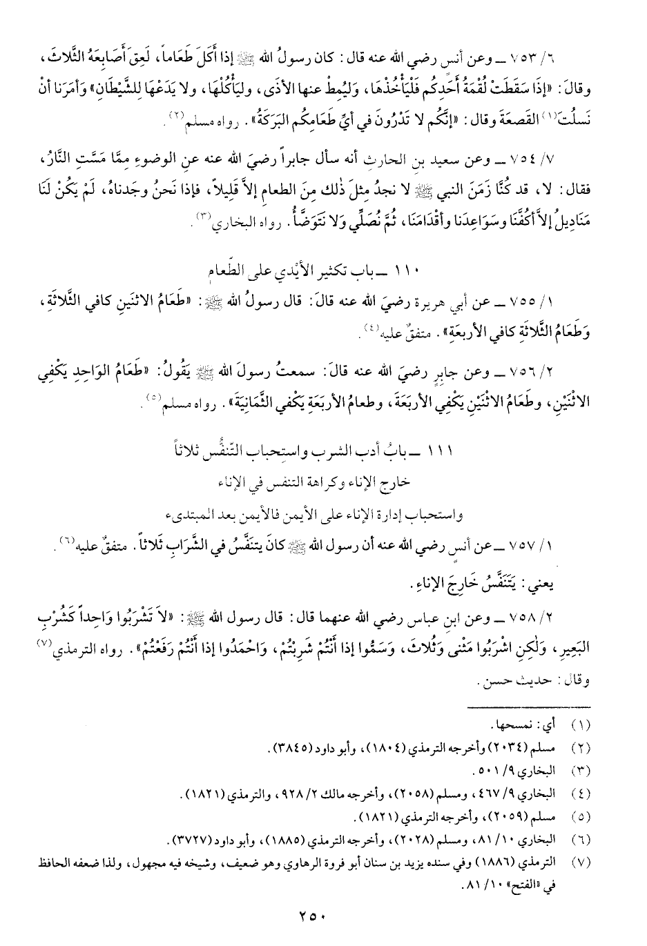 1/755- عن أَبي هريرة رضيَ اللَّه تعالى عنه قالَ: قَالَ رسولُ اللَّه صَلّى اللهُ عَلَيْهِ وسَلَّم: "طَعَامُ الإثنينِ كَافِي الثَّلاثَةِ، وَطَعَامُ الثَلاثَةِ كافي الأَربعَةِ" متفقٌ عَلَيْهِ.
