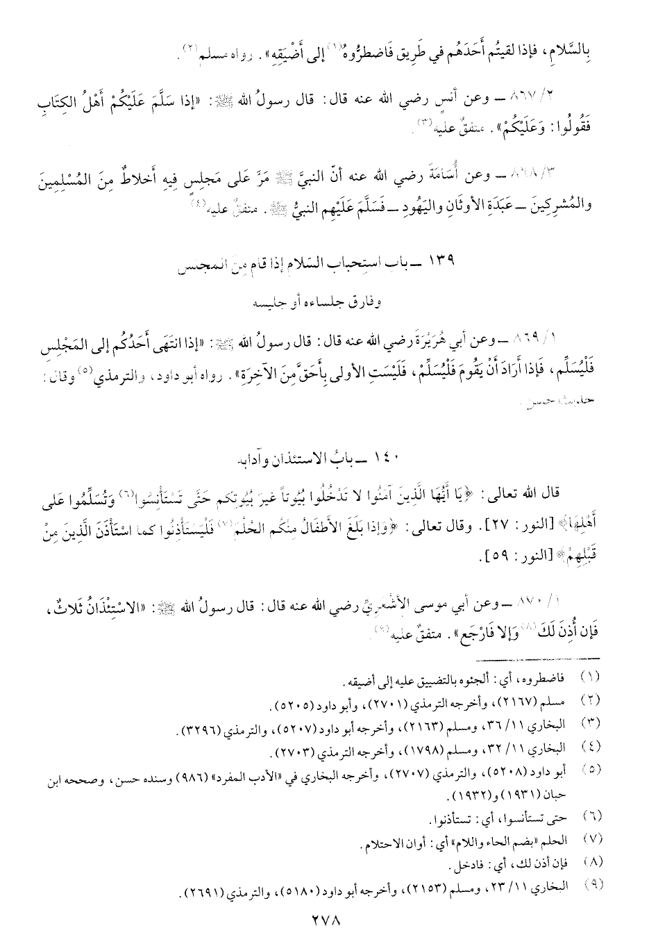 139- باب استحباب السلام إِذَا قام منَ المجلس وفارق جلساءه أَوْ جليسه