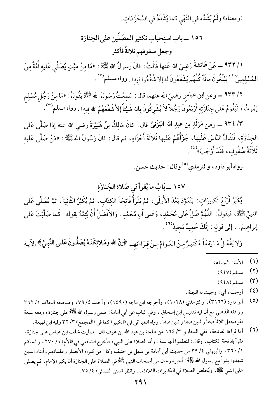 1/932- عَنْ عائشةَ رضي اللَّهُ عنها قَالَتْ: قالَ رسولُ اللَّهِ صَلّى اللهُ عَلَيْهِ وسَلَّم: " مَا مِنْ ميِّتٍ يُصلِّي عليهِ أُمَّةٌ مِنَ المُسْلِمِينَ يبلُغُونَ مئَة كُلُّهُم يشْفَعُونَ له إِلا شُفِّعُوا فيه" رواه مسلم.