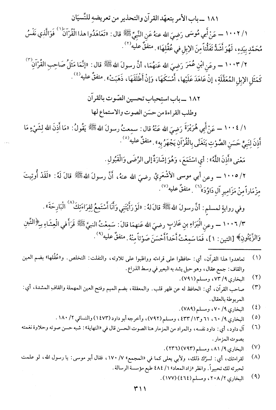 181- باب الأمر بتعهد القرآن والتحذير من تعريضه للنسيان