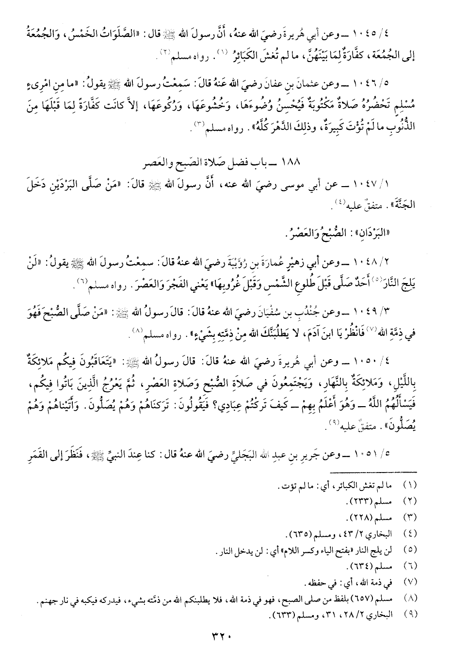 1/1047- عن أَبي موسى رضي اللَّه عنهُ أَنَّ رسول اللَّهِ صَلّى اللهُ عَلَيْهِ وسَلَّم قَالَ: "مَنْ صلَّى البرْديْن دَخَلَ الجنَّة" متفقٌ عَلَيهِ.