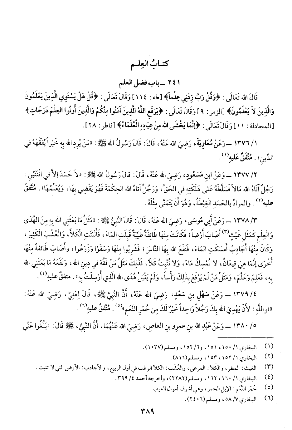 1/1276- وعَنْ مُعاوِيةَ، رضي اللَّه عنْهُ، قَالَ: قَال رسُولُ اللَّهِ صَلّى اللهُ عَلَيْهِ وسَلَّم: "مَنْ يُرِد اللَّه بِهِ خيْراً يُفَقِّهْهُ في الدِّينِ" متفقٌ عليه.