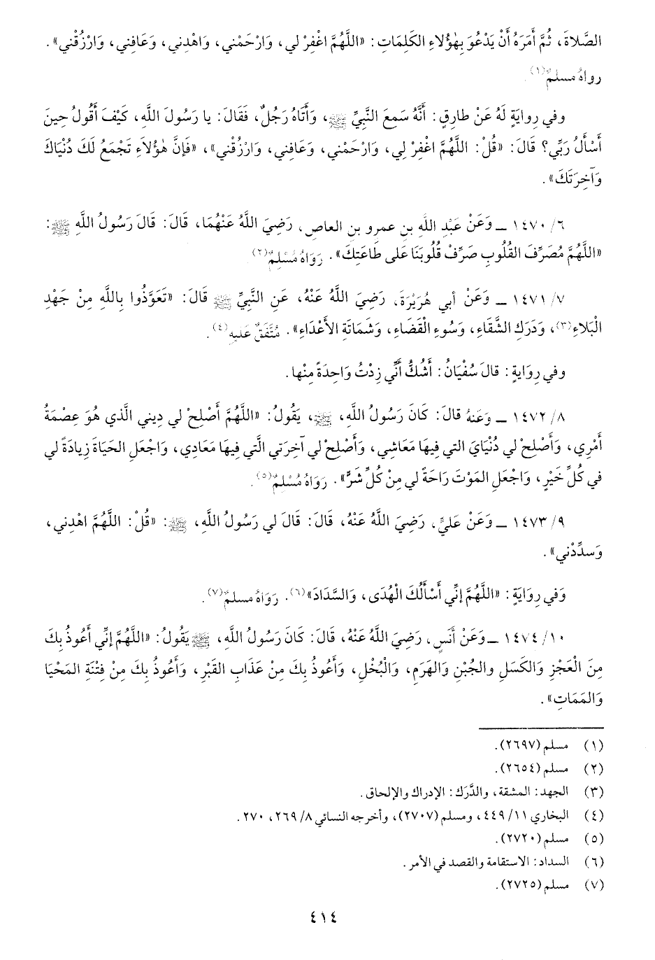 9/1473- وَعنْ علي رَضِيَ اللَّه عَنْهُ، قَالَ: قَالَ لي رَسُولُ اللَّهِ صَلّى اللهُ عَلَيْهِ وسَلَّم:"قُلْ: اللَّهُمَّ اهْدِني، وَسدِّدْني".