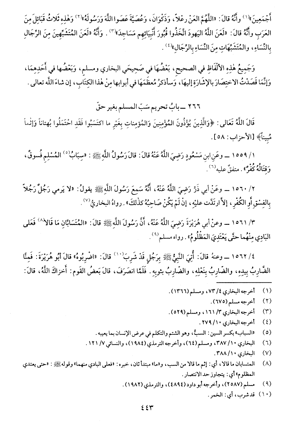 1/1559- وعنِ ابنِ مَسعودٍ رضي اللَّه عَنهُ قَالَ: قَالَ رسُولُ اللَّه صَلّى اللهُ عَلَيْهِ وسَلَّم: "سِباب المُسْلِمِ فُسوقٌ، وقِتَالُهُ كُفْرٌ" متفقٌ عَلَيهِ.