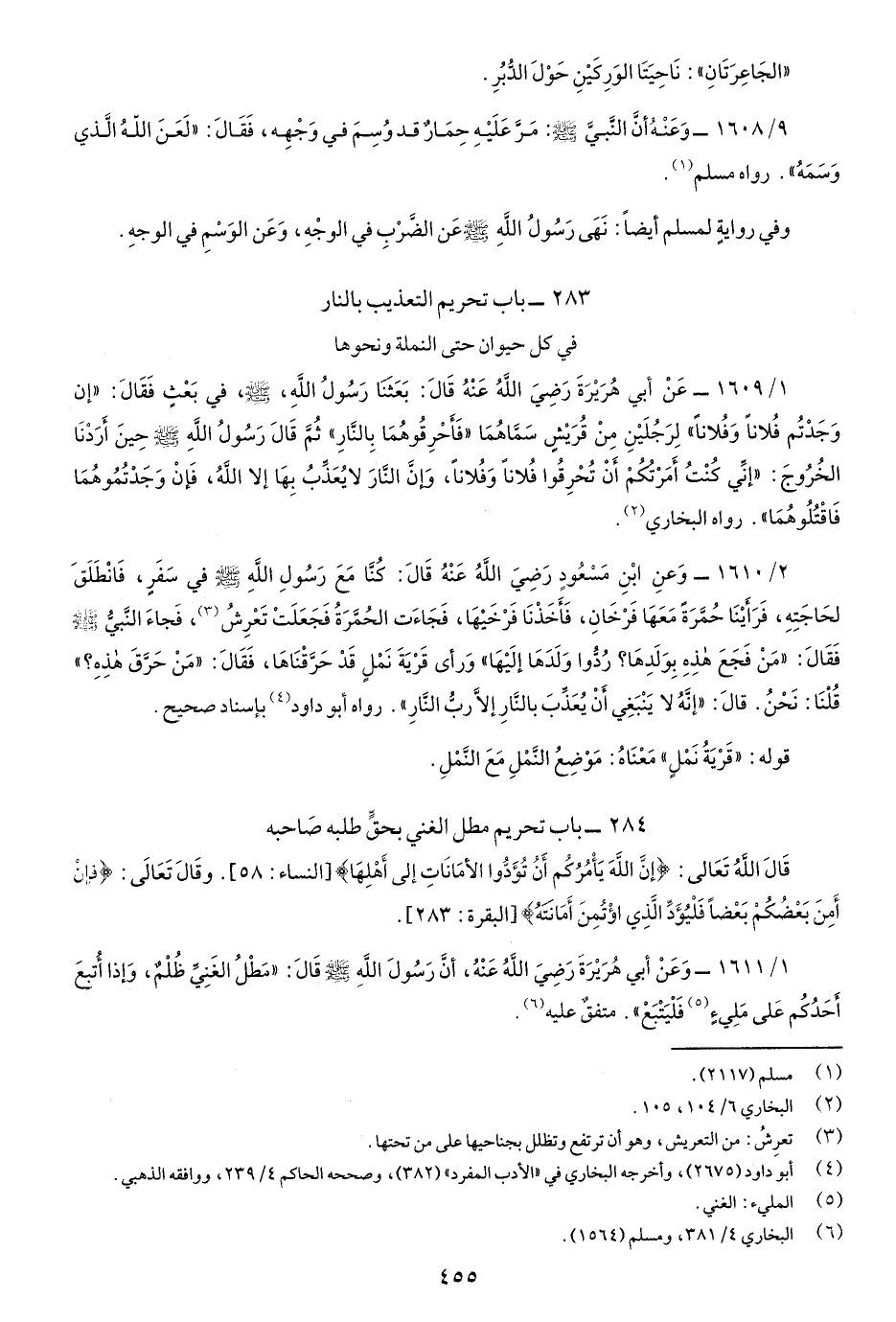 283- باب تحريم التعذيب بالنار في كل حيوان حَتَّى النملة ونحوها