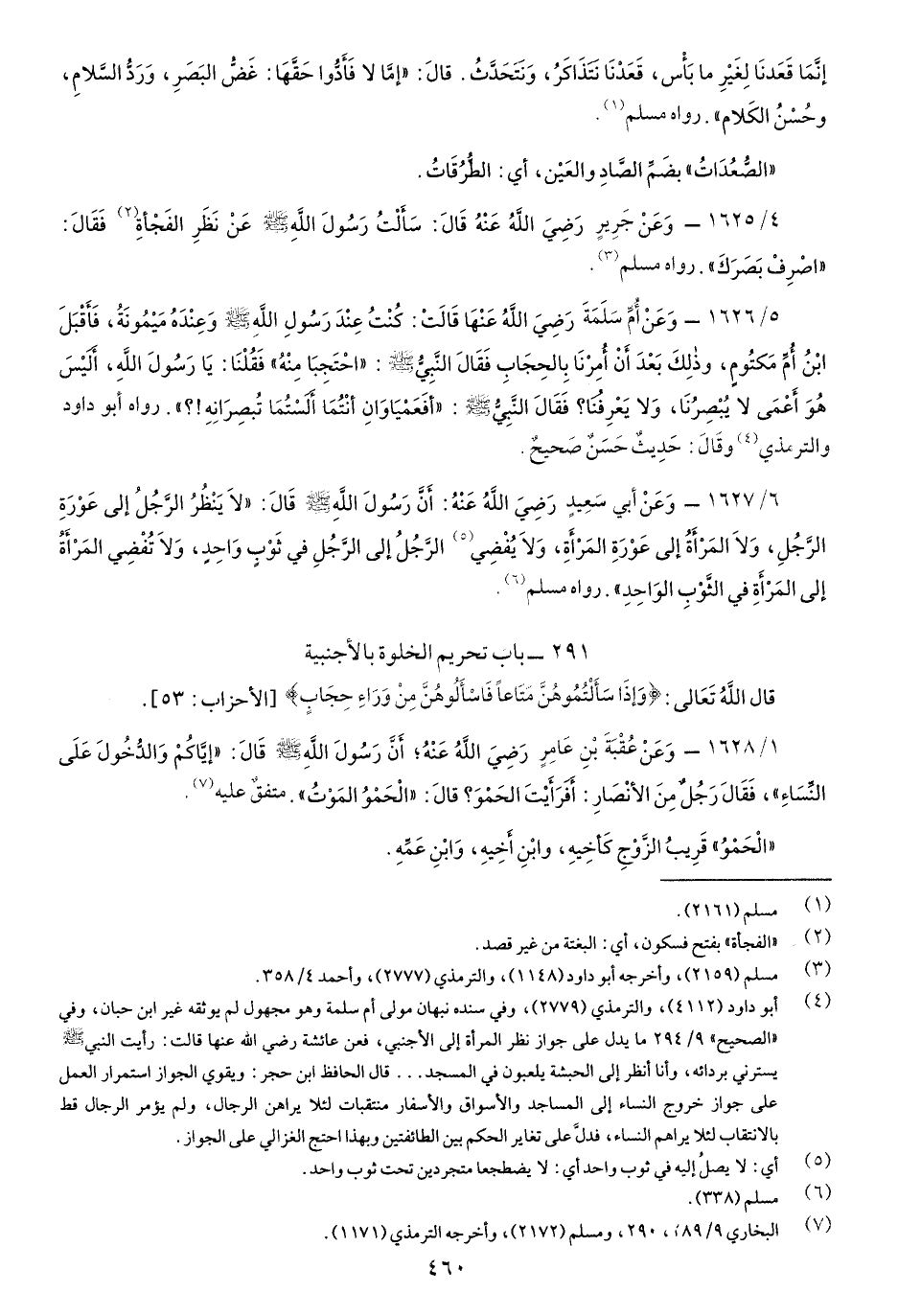 4/1625- وَعَنْ جَرِير رضي اللَّه عنْهُ قَالَ: سألْتُ رَسُولَ اللَّهِ صَلّى اللهُ عَلَيْهِ وسَلَّم عَنْ نَظَرِ الفجأةِ فَقَال:"اصْرِفْ بصَرَك" رواه مسلم.