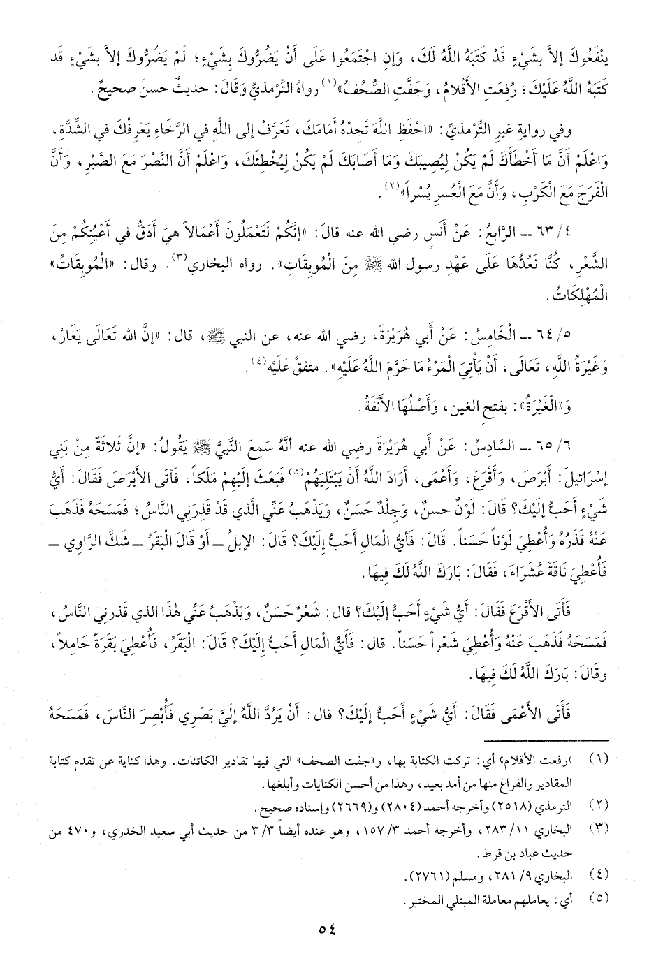 يَنْفعُوكَ إِلاَّ بِشَيْءٍ قَد كَتَبَهُ اللَّهُ لَكَ، وإِنِ اجْتَمَعُوا عَلَى أَنْ يَضُرُّوك بِشَيْءٍ، لَمْ يَضُرُّوكَ إِلاَّ بَشَيْءٍ قَدْ كَتَبَهُ اللَّه عليْكَ، رُفِعَتِ الأقْلامُ، وجَفَّتِ الصُّحُفُ".