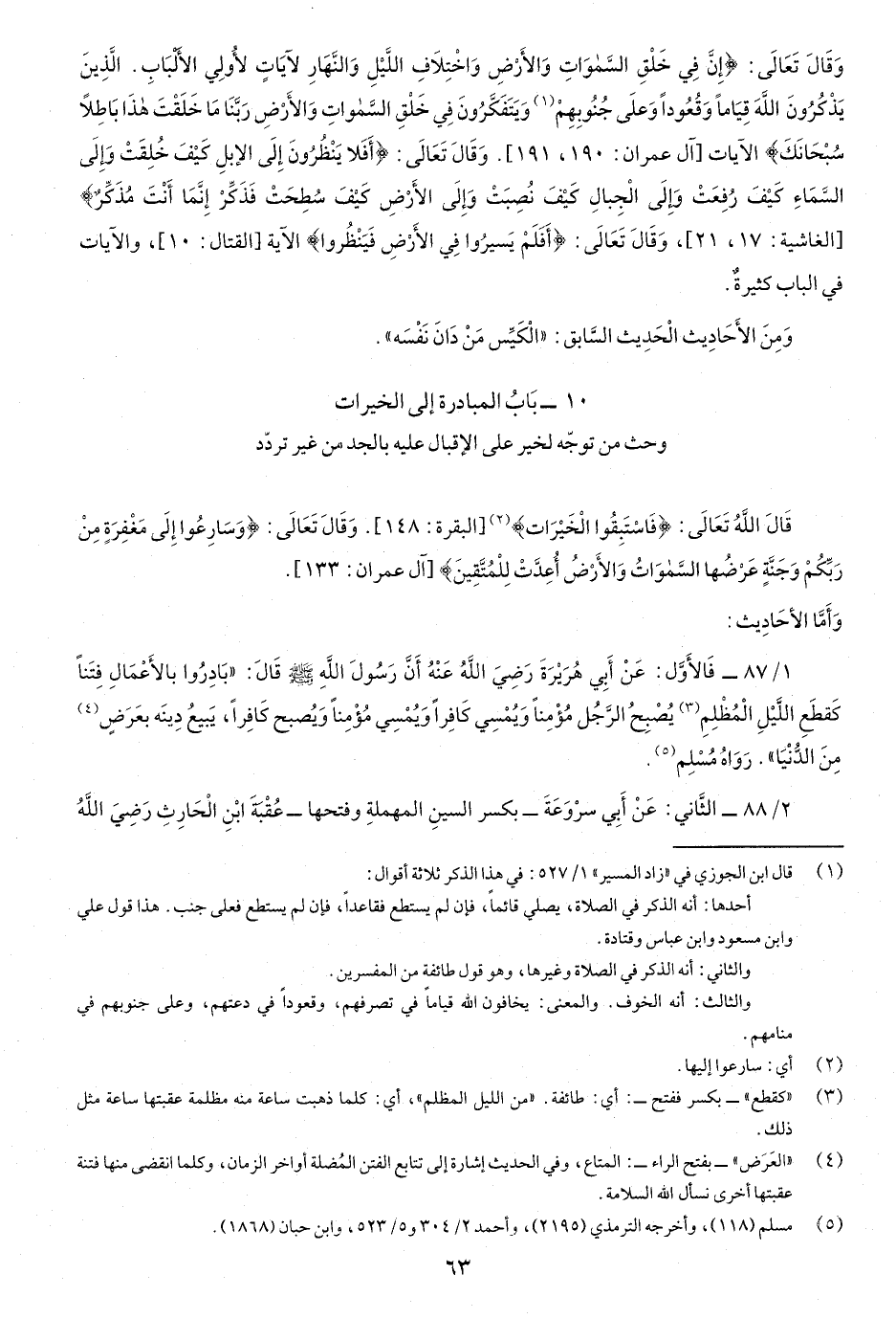 10- باب في المبادرة إلى الخيرات وحثَّ من توجَّه لخير على الإِقبال عليه بالجدِّ من غير تردَّد