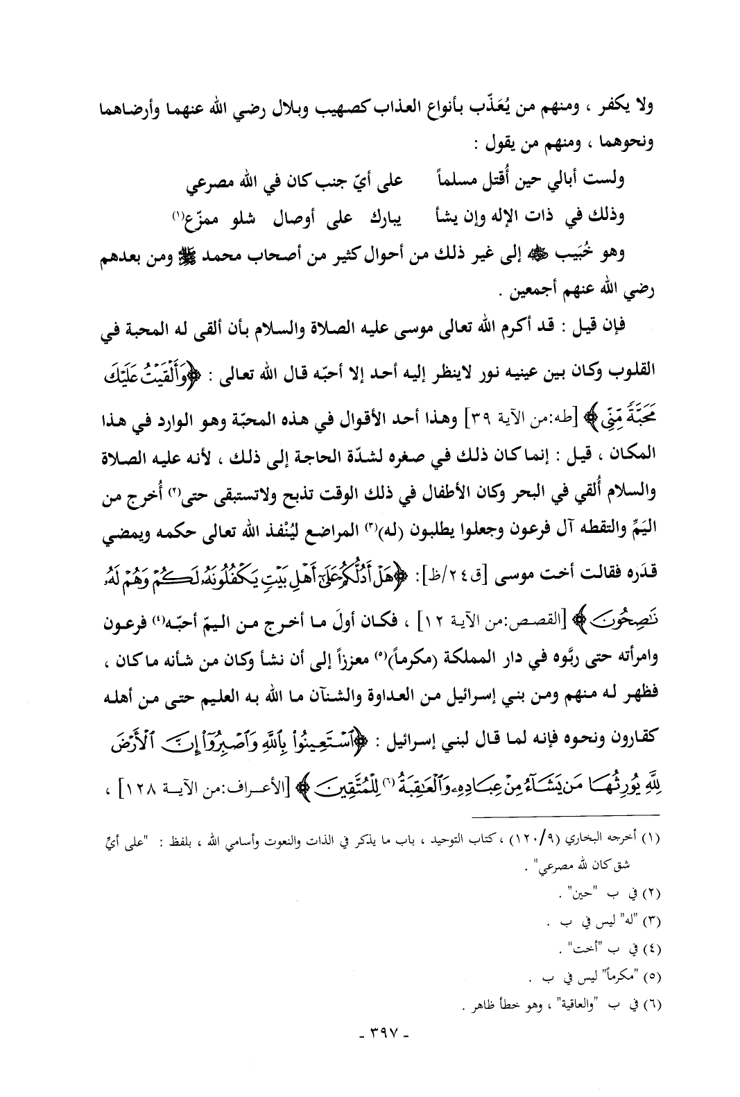 فإن قيل: قد أكرم الله تعالى موسى عليه الصلاة والسلام بأن ألقى له المحبة في القلوب وكان بين عينيه نور لاينظر إليه أحد إلا أحبّه قال الله تعالى: {وَأَلْقَيْتُ عَلَيْكَ مَحَبَّةً مِنِّي} [طه: من الآية 39] وهذا أحد الأقوال في هذه المحبّة وهو الوارد في هذا المكان , قيل: إنما كان ذلك في صغره لشدّة الحاجة إلى ذلك , لأنه عليه الصلاة والسلام أُلقي في البحر وكان الأطفال في ذلك الوقت تذبح ولاتستبقى حتى (¬2) أُخرج من اليَمِّ والتقطه آل فرعون وجعلوا يطلبون (له) (¬3) المراضع ليُنْفذ الله تعالى حكمه ويمضي قدَره فقالت أخت موسى [ق 24/ظ]: {هَلْ أَدُلُّكُمْ عَلَى أَهْلِ بَيْتٍ يَكْفُلُونَهُ لَكُمْ وَهُمْ لَهُ نَاصِحُونَ} [القصص: من الآية 12] , فكان أولَ ما أخرج من اليمّ أحبّه (¬4) فرعون وامرأته حتى ربَّوه في دار المملكة (مكرماً) (¬5) معززاً إلى أن نشأ وكان من شأنه ما كان , فظهر له منهم ومن بني إسرائيل من العداوة والشنآن ما الله به العليم حتى من أهله كقارون ونحوه فإنه لما قال لبني إسرائيل: {اسْتَعِينُوا بِاللَّهِ وَاصْبِرُوا إِنَّ