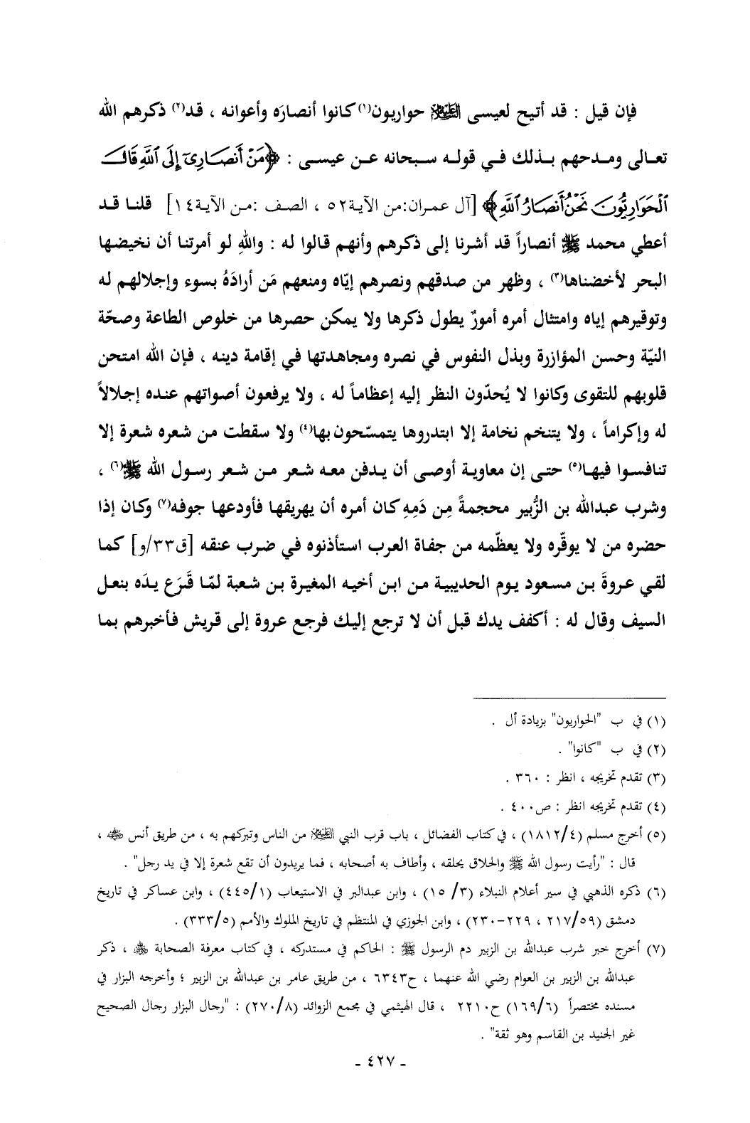 (¬7) أخرج خبر شرب عبدالله بن الزبير دم الرسول - صلى الله عليه وسلم -: الحاكم في مستدركه , في كتاب معرفة الصحابة - رضي الله عنهم - , ذكر عبدالله بن الزبير بن العوام رضي الله عنهما , ح 6343 , من طريق عامر بن عبدالله بن الزبير؛ وأخرجه البزار في مسنده مختصراً (6/ 169) ح 2210 , قال الهيثمي في مجمع الزوائد (8/ 270): "رجال البزار رجال الصحيح غير الجنيد بن القاسم وهو ثقة".