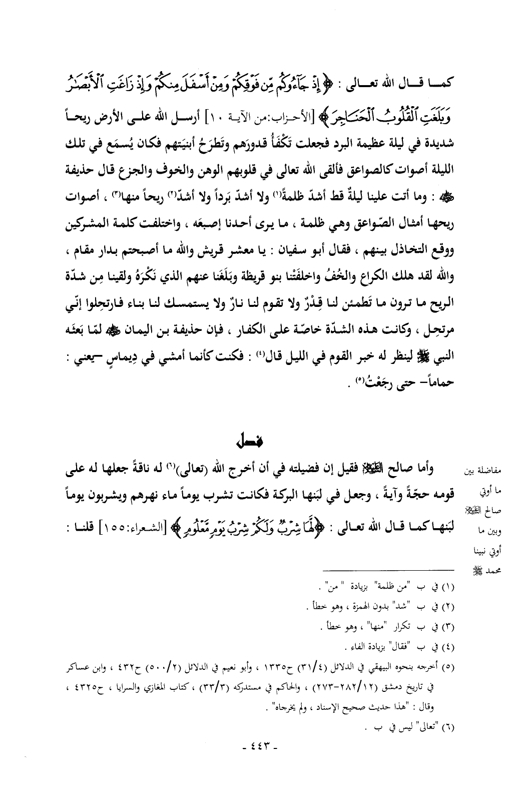 (¬5) أخرجه بنحوه البيهقي في الدلائل (4/ 31) ح 1335 , وأبو نعيم في الدلائل (2/ 500) ح 432 , وابن عساكر في تاريخ دمشق (12/ 282 - 273) , والحاكم في مستدركه (3/ 33) , كتاب المغازي والسرايا , ح 4325 , وقال: "هذا حديث صحيح الإسناد , ولم يخرجاه".