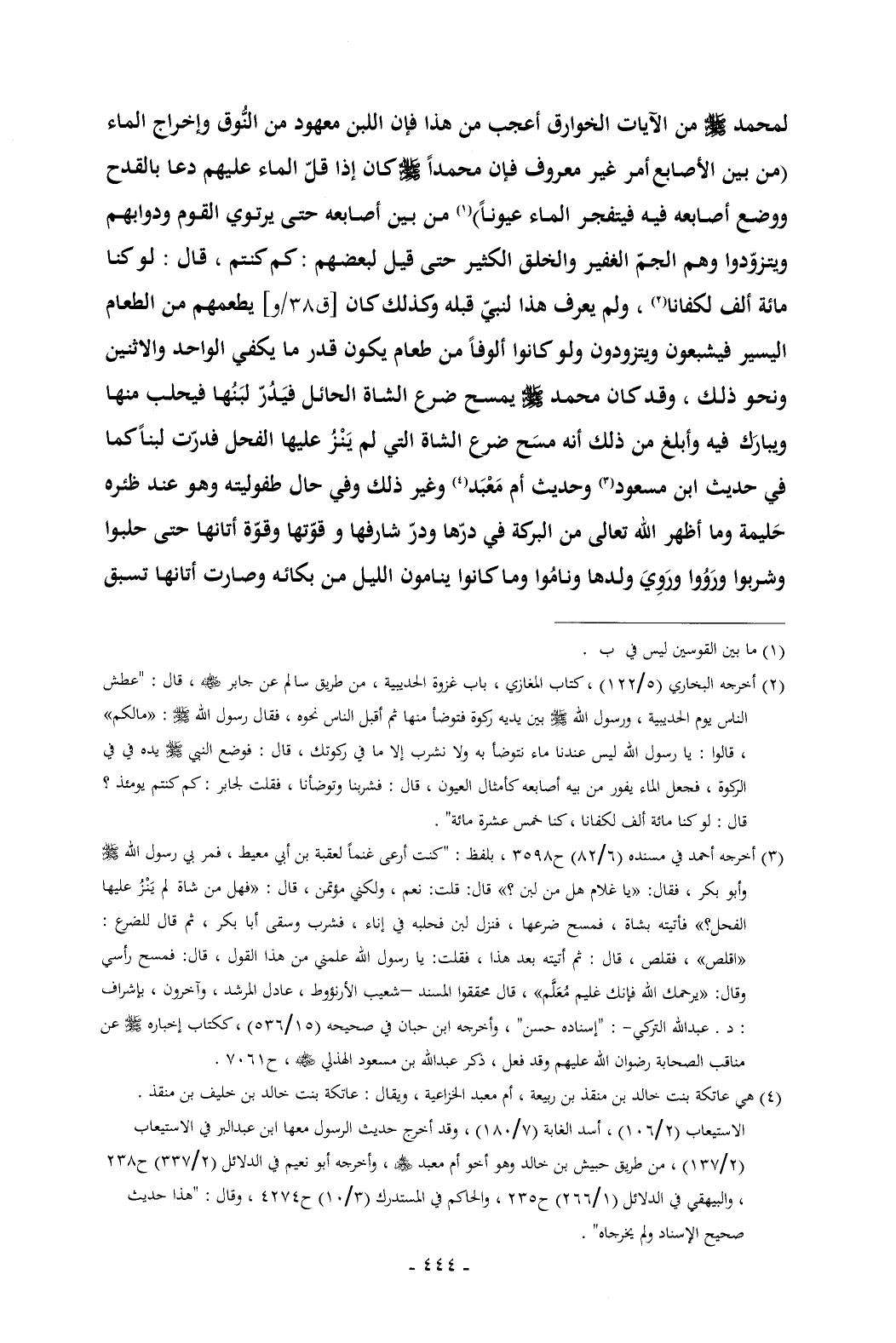 (¬3) أخرجه أحمد في مسنده (6/ 82) ح 3598 , بلفظ: "كنت أرعى غنماً لعقبة بن أبي معيط , فمر بي رسول الله - صلى الله عليه وسلم - وأبو بكر , فقال: «يا غلام هل من لبن؟ » قال: قلت: نعم، ولكني مؤتمن , قال: «فهل من شاة لم يَنْزُ عليها الفحل؟ » فأتيته بشاة , فمسح ضرعها، فنزل لبن فحلبه في إناء، فشرب وسقى أبا بكر , ثم قال للضرع: «اقلص»، فقلص , قال: ثم أتيته بعد هذا , فقلت: يا رسول الله علمني من هذا القول , قال: فمسح رأسي وقال: «يرحمك الله فإنك غليم مُعَلَّم «, قال محققوا المسند -شعيب الأرنؤوط , عادل المرشد , وآخرون , بإشراف: د. عبدالله التركي-: "إسناده حسن" , وأخرجه ابن حبان في صحيحه (15/ 536) , ككتاب إخباره - صلى الله عليه وسلم - عن مناقب الصحابة رضوان الله عليهم وقد فعل , ذكر عبدالله بن مسعود الهذلي - رضي الله عنه - , ح 7061.