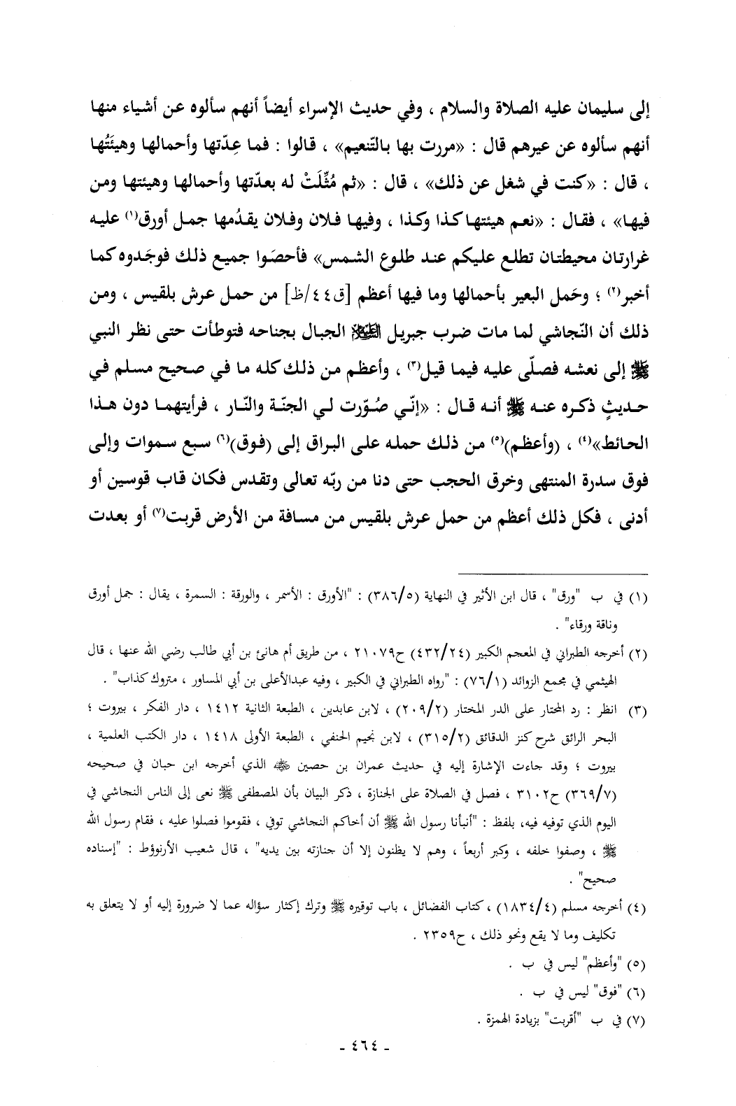 النبي - صلى الله عليه وسلم - إلى نعشه فصلّى عليه فيما قيل (¬3) , وأعظم من ذلك كله ما في صحيح مسلم في حديثٍ ذكره عنه - صلى الله عليه وسلم - أنه قال: «إنّي صُوّرت لي الجنّة والنّار , فرأيتهما دون هذا الحائط» (¬4) , (وأعظم) (¬5) من ذلك حمله على البراق إلى (فوق) (¬6) سبع سموات وإلى فوق سدرة المنتهى وخرق الحجب حتى دنا من ربّه تعالى وتقدس فكان قاب قوسين أو أدنى , فكل ذلك أعظم من حمل عرش بلقيس من مسافة من الأرض قربت (¬7) أو بعدت ,