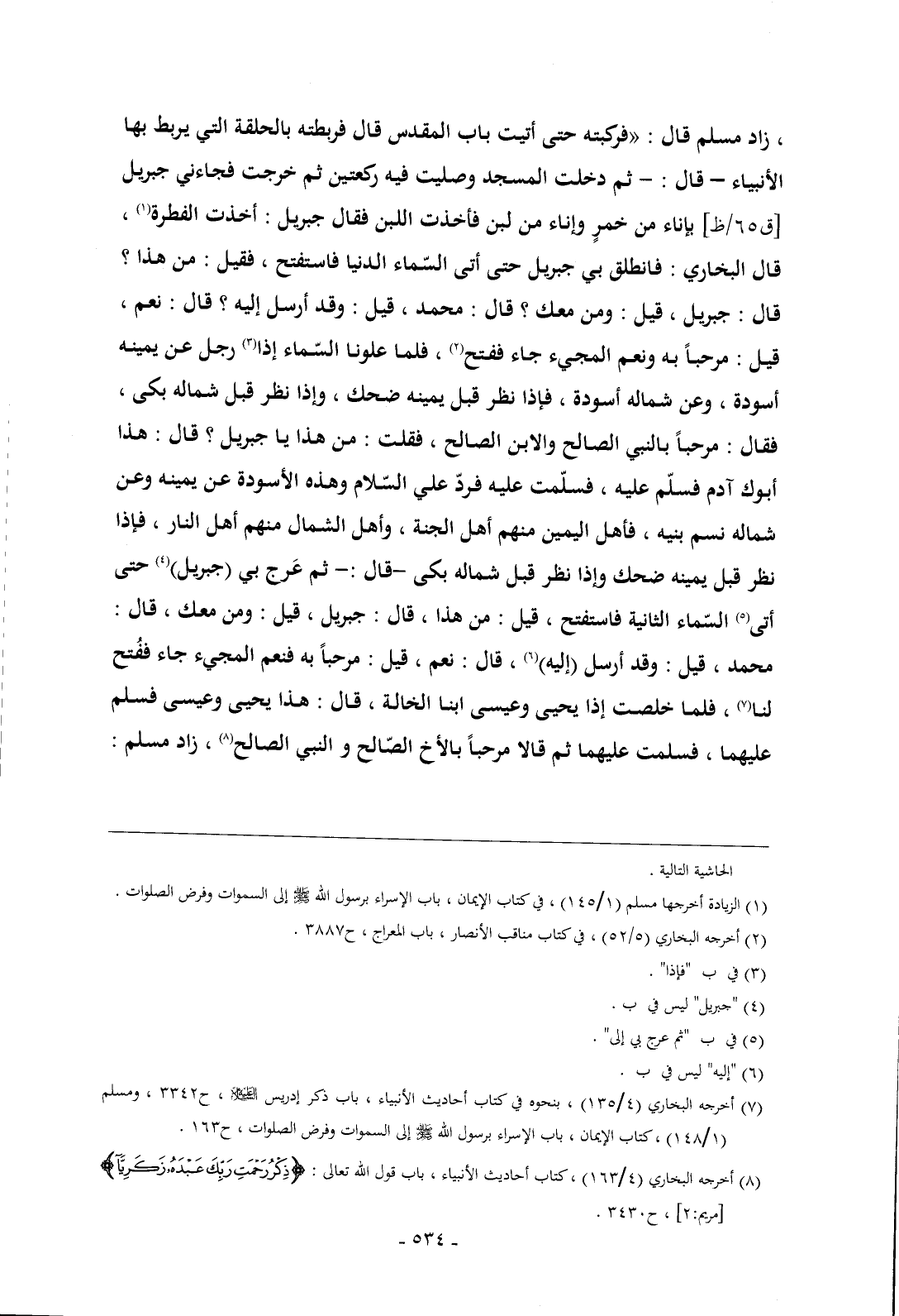(¬1) الزيادة أخرجها مسلم (1/ 145) , في كتاب الإيمان , باب الإسراء برسول الله - صلى الله عليه وسلم - إلى السموات وفرض الصلوات.
