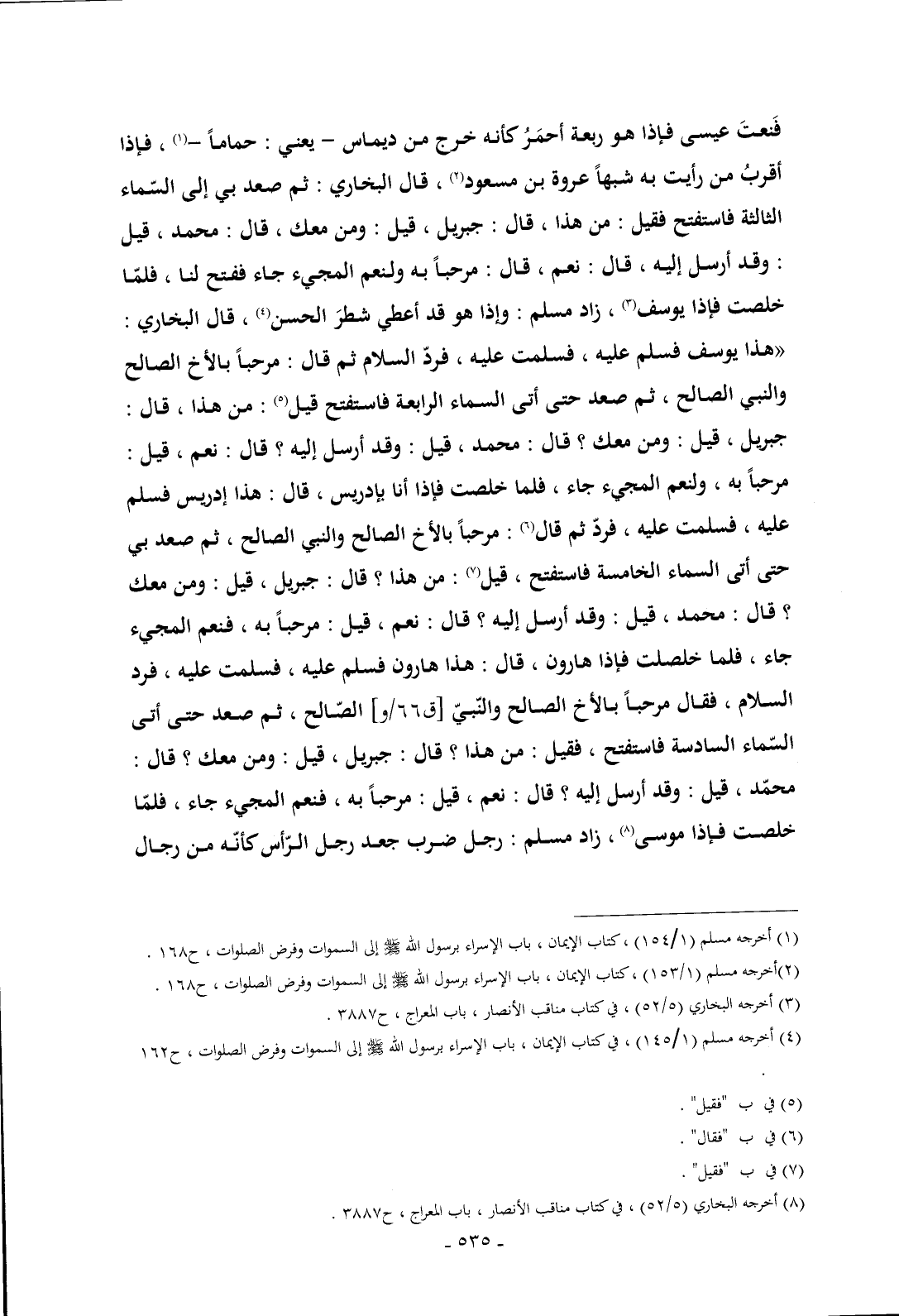 (¬1) أخرجه مسلم (1/ 154) , كتاب الإيمان , باب الإسراء برسول الله - صلى الله عليه وسلم - إلى السموات وفرض الصلوات , ح 168.