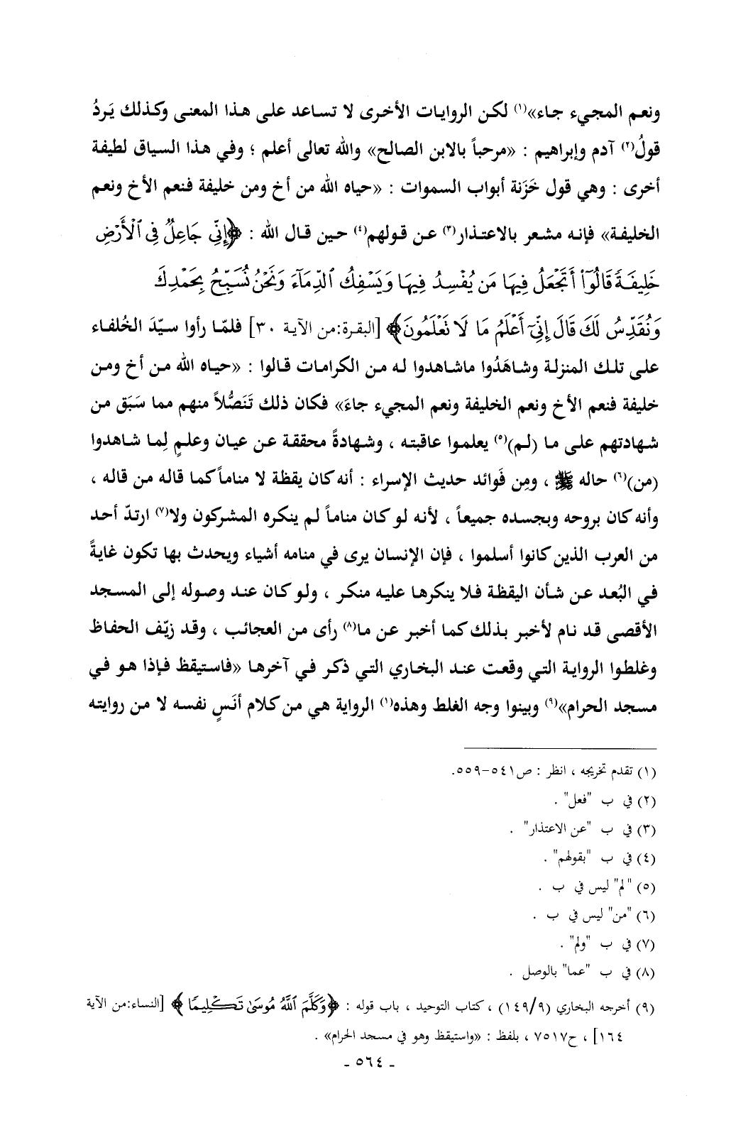 (¬9) أخرجه البخاري (9/ 149) , كتاب التوحيد , باب قوله: {وَكَلَّمَ اللَّهُ مُوسَى تَكْلِيمًا} [النساء: من الآية 164] , ح 7517 , بلفظ: «واستيقظ وهو في مسجد الحرام».