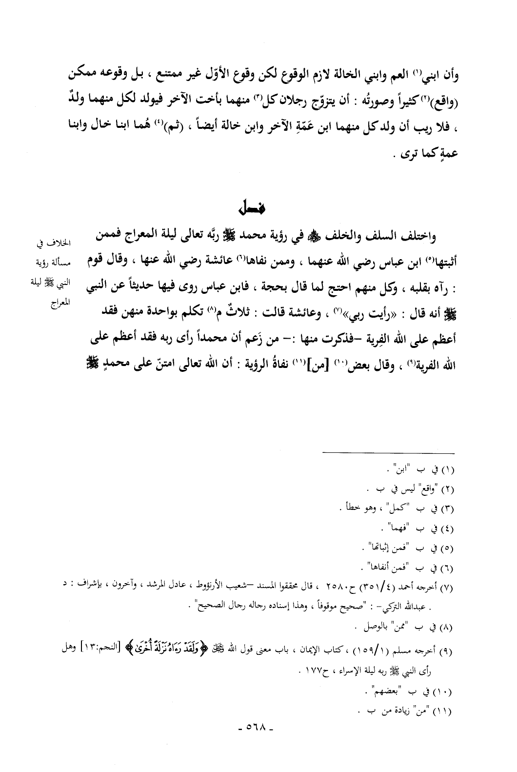(¬9) أخرجه مسلم (1/ 159) , كتاب الإيمان , باب معنى قول الله - عز وجل - {وَلَقَدْ رَآهُ نَزْلَةً أُخْرَى} [النجم: 13] وهل رأى النبي - صلى الله عليه وسلم - ربه ليلة الإسراء , ح 177.