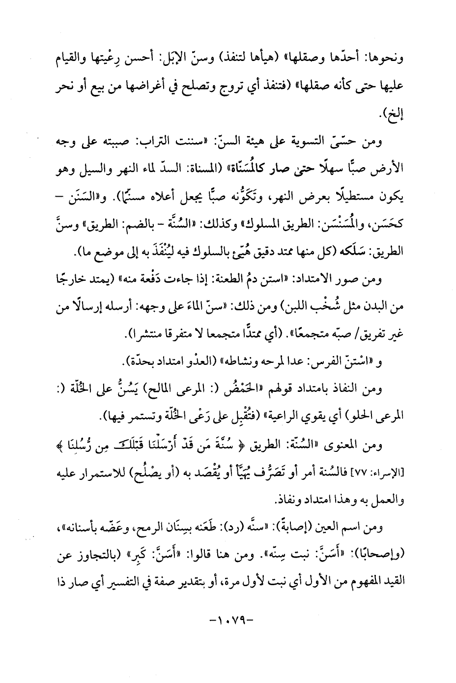 ومن المعنوى "السُنّة: الطريق {سُنَّةَ مَنْ قَدْ أَرْسَلْنَا قَبْلَكَ مِنْ رُسُلِنَا} [الإسراء: 77] فالسُنة أمر أو تَصَرُّف يُهَيَّأ أو يُقْصَد به (أو يصْلُح) للاستمرار عليه والعمل به وهذا امتداد ونفاذ.