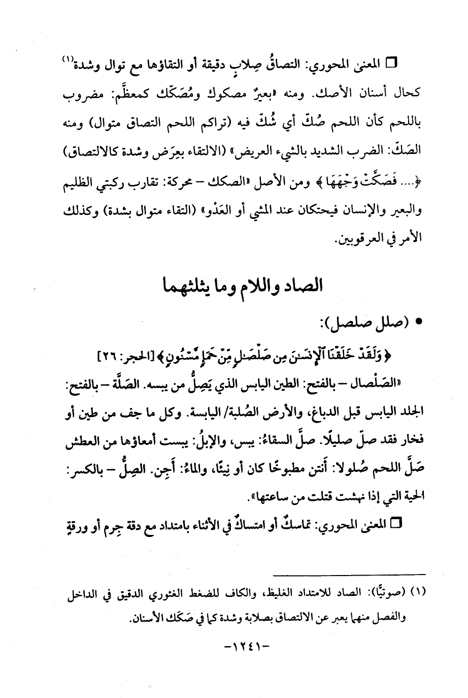 (¬1) (صوتيًّا): الصاد للامتداد الغليظ، والكاف للضغط الغئوري الدقيق في الداخل والفصل منهما يعبر عن الالتصاق بصلابة وشدة كما في صَكَك الأسنان.