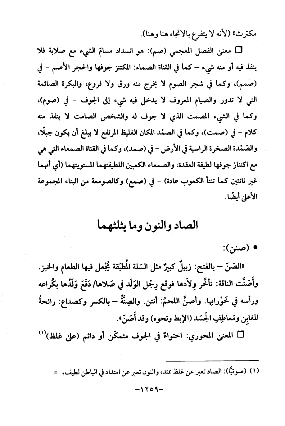 (¬1) (صوتيًّا): الصاد تعبر عن غلظ ممتد، والنون تعبر عن امتداد في الباطن لطيف، =
