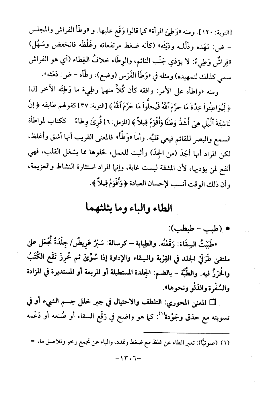 (¬1) (صوتيًّا): تعبر الطاء عن غلظ مع ضغط وتمدد، والباء عن تجمع رخو وتلاصق ما، =