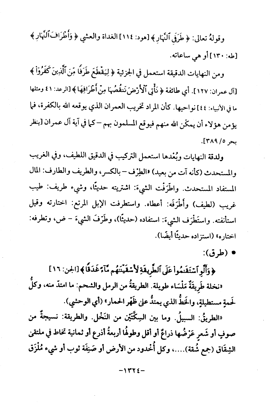 وقولهُ تعالى: {طَرَفَيِ النَّهَارِ} [هود: 114] الغداة والعشي {وَأَطْرَافَ النَّهَارِ} [طه: 130] أو هي ساعاته.