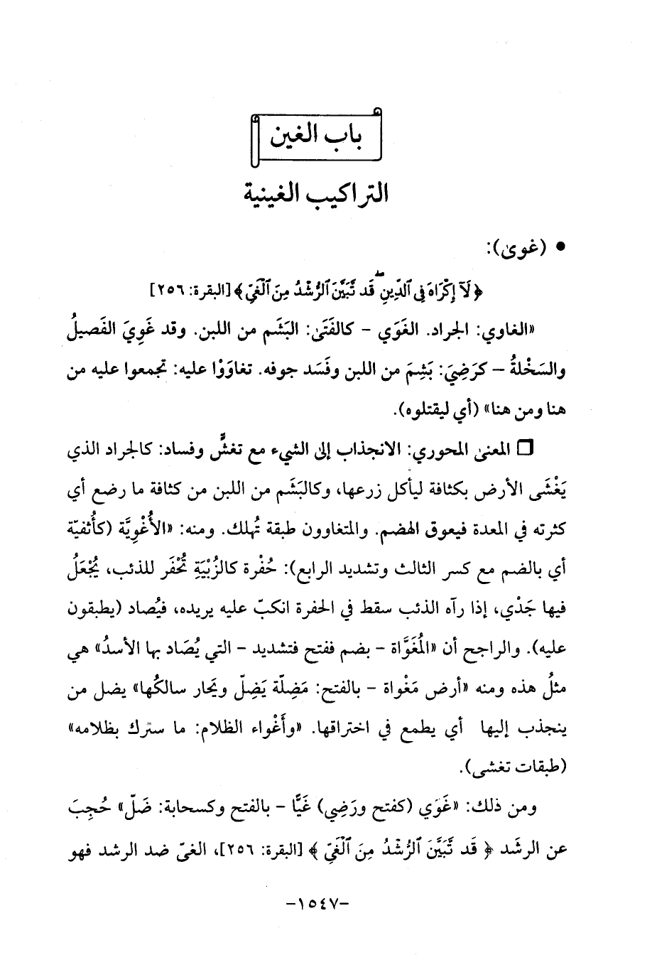 ومن ذلك: "غَوَي (كفتح ورَضِي) غَيًّا -بالفتح وكسحابة: ضَلّ "حُجِبَ عن الرشَد {قَدْ تَبَيَّنَ الرُّشْدُ مِنَ الْغَيِّ} [البقرة: 256]، الغىّ ضد الرشد فهو