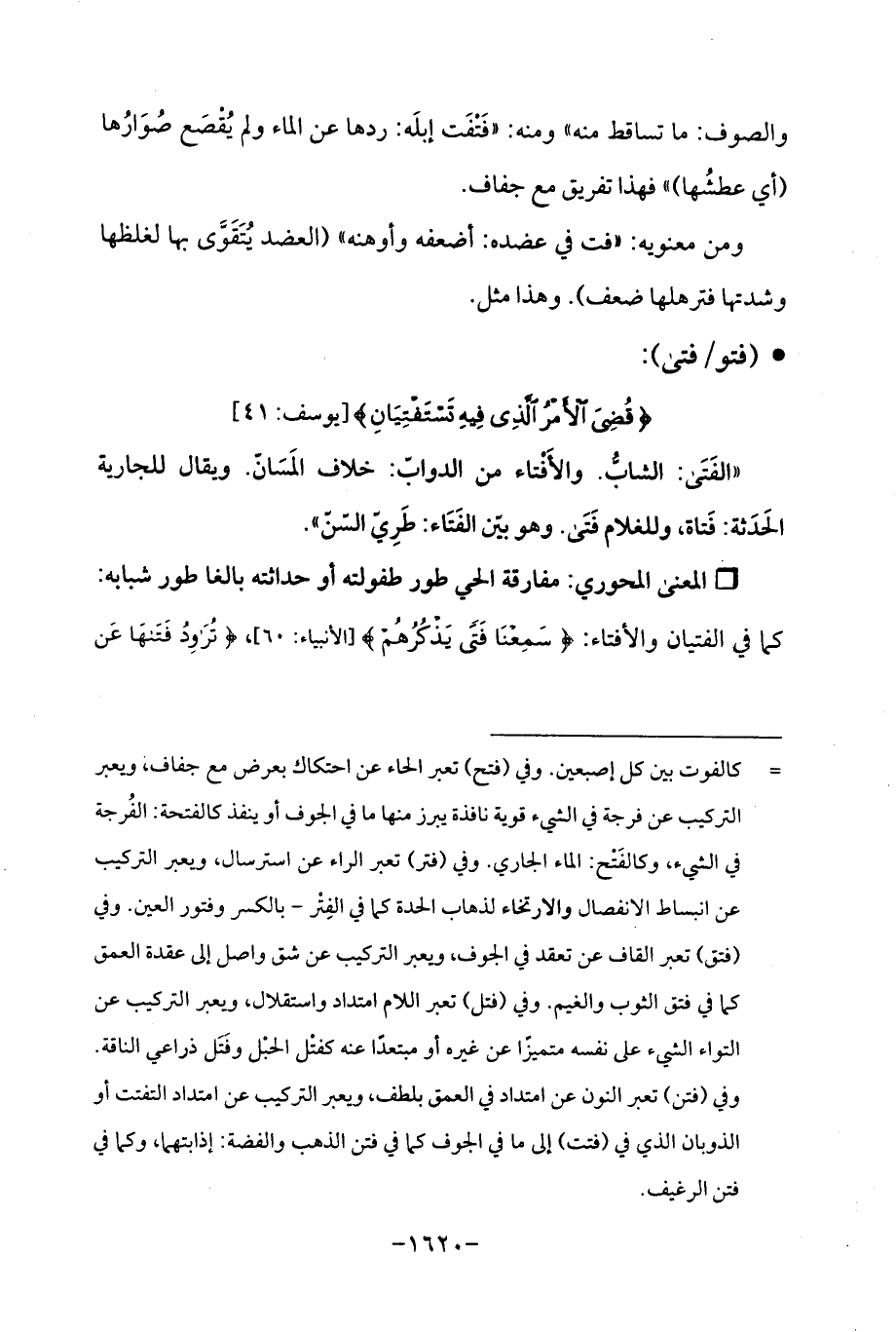 Qمفارقة الحي طور طفولته أو حداثته بالغا طور شبابه: كما في الفتيان والأفتاء: {سَمِعْنَا فَتًى يَذْكُرُهُمْ} [الأنبياء: 60]، {تُرَاوِدُ فَتَاهَا عَنْ
