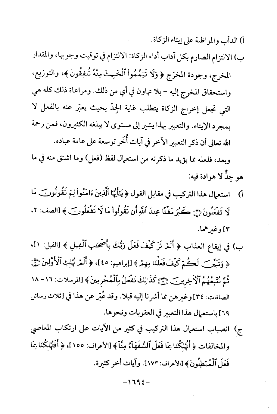 أ) استعمال هذا التركيب في مقابل القول {يَاأَيُّهَا الَّذِينَ آمَنُوا لِمَ تَقُولُونَ مَا لَا تَفْعَلُونَ (2) كَبُرَ مَقْتًا عِنْدَ اللَّهِ أَنْ تَقُولُوا مَا لَا تَفْعَلُونَ} [الصف: 2، 3] وغيرهما.