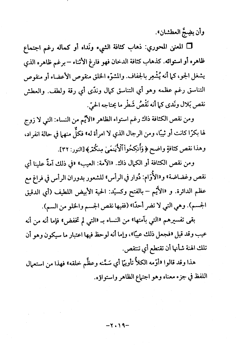 ومن نقص الكثافة ذاك رغم استواء الظاهر "الأيِّم من النساء: التي لا زوج لها بكرًا كانت أو ثيبًا، ومن الرجال الذي لا امرأة له "فكلٌّ منهما في حالة انفراد، وهذا نقص كثافةٍ واضح {وَأَنْكِحُوا الْأَيَامَى مِنْكُمْ} [النور: 32].
