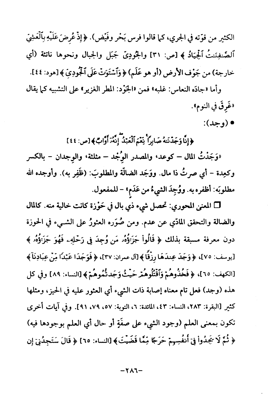 الكثير من قوّته في الجري، كما قالوا فرس بَحْر وفَيْض). {إِذْ عُرِضَ عَلَيْهِ بِالْعَشِيِّ الصَّافِنَاتُ الْجِيَادُ} [ص: 31] والجُودِيّ جَبَل والجبال ونحوها ناتئة (أي خارجة) من جَوْف الأرض (أو هو عَلَم) {وَاسْتَوَتْ عَلَى الْجُودِيِّ} [هود: 44].