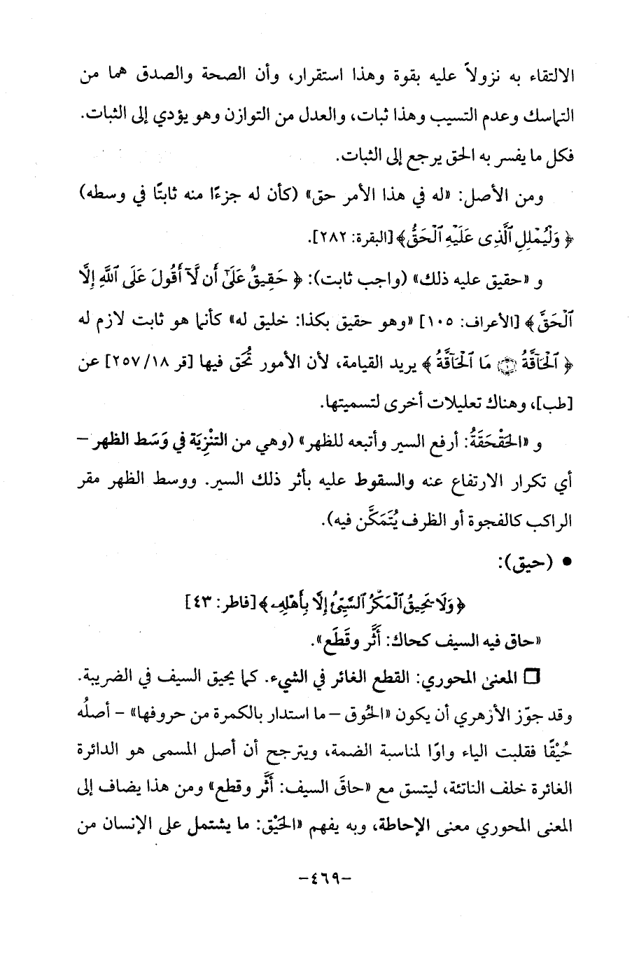و"حقيق عليه ذلك " (واجب ثابت): {حَقِيقٌ عَلَى أَنْ لَا أَقُولَ عَلَى اللَّهِ إِلَّا الْحَقَّ} [الأعراف: 105] "وهو حقيق بكذا: خليق له "كأنما هو ثابت لازم له {الْحَاقَّةُ (1) مَا الْحَاقَّةُ} يريد القيامة، لأن الأمور تُحَق فيها [قر 18/ 257] عن [طب]، وهناك تعليلات أخرى لتسميتها.