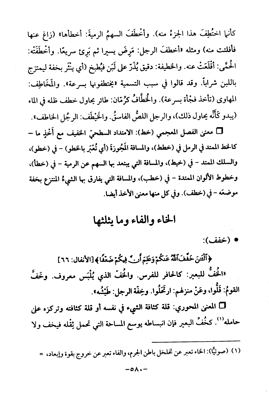(¬1) (صوتيًّا)؛ الخاء تعبر عن تخلخل باطن الجرم، والفاء تعبر عن خروج بقوة وإبعاد، =
