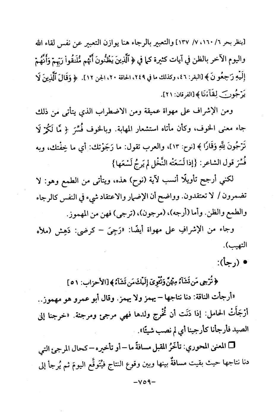 لكني أرجح تأويلًا أنسب لآية (نوح) هذه، ويتأتى من الطمع وهو: لا تضمرون/ لا تعتقدون. وواضح أن الإضمار والاعتقاد شيء في النفس كالرجاء والطمع والظن. وأما (أرجه)، (مرجون)، (ترجى) فهن من المهموز.