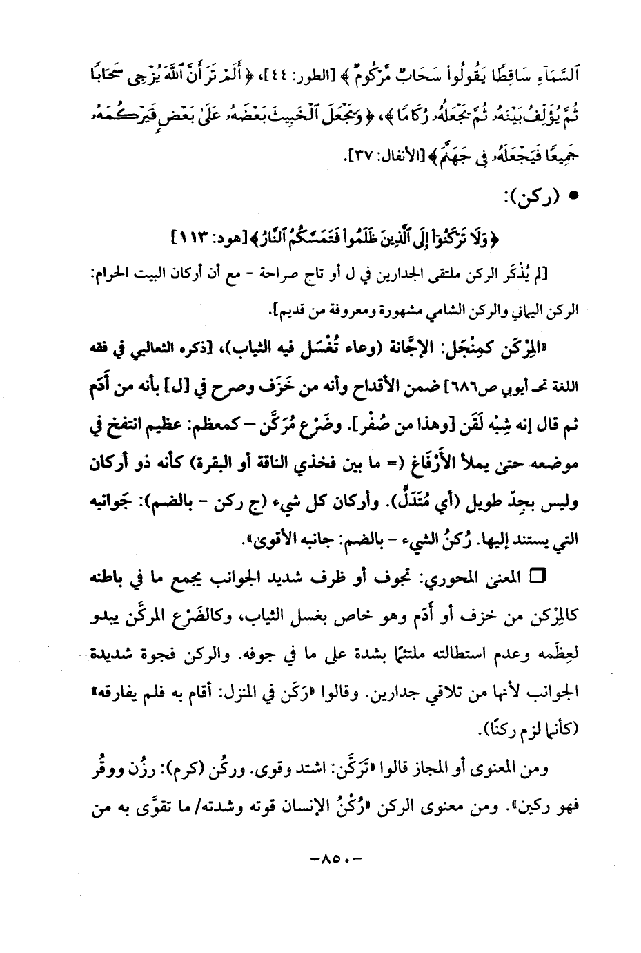 ومن المعنوى أو المجاز قالوا "تَرَكَّن: اشتد وقوى. وركُن (كرم): رزُن ووقُر فهو ركين ". ومن معنوى الركن "رُكْنُ الإنسان قوته وشدته/ ما تقوَّى به من