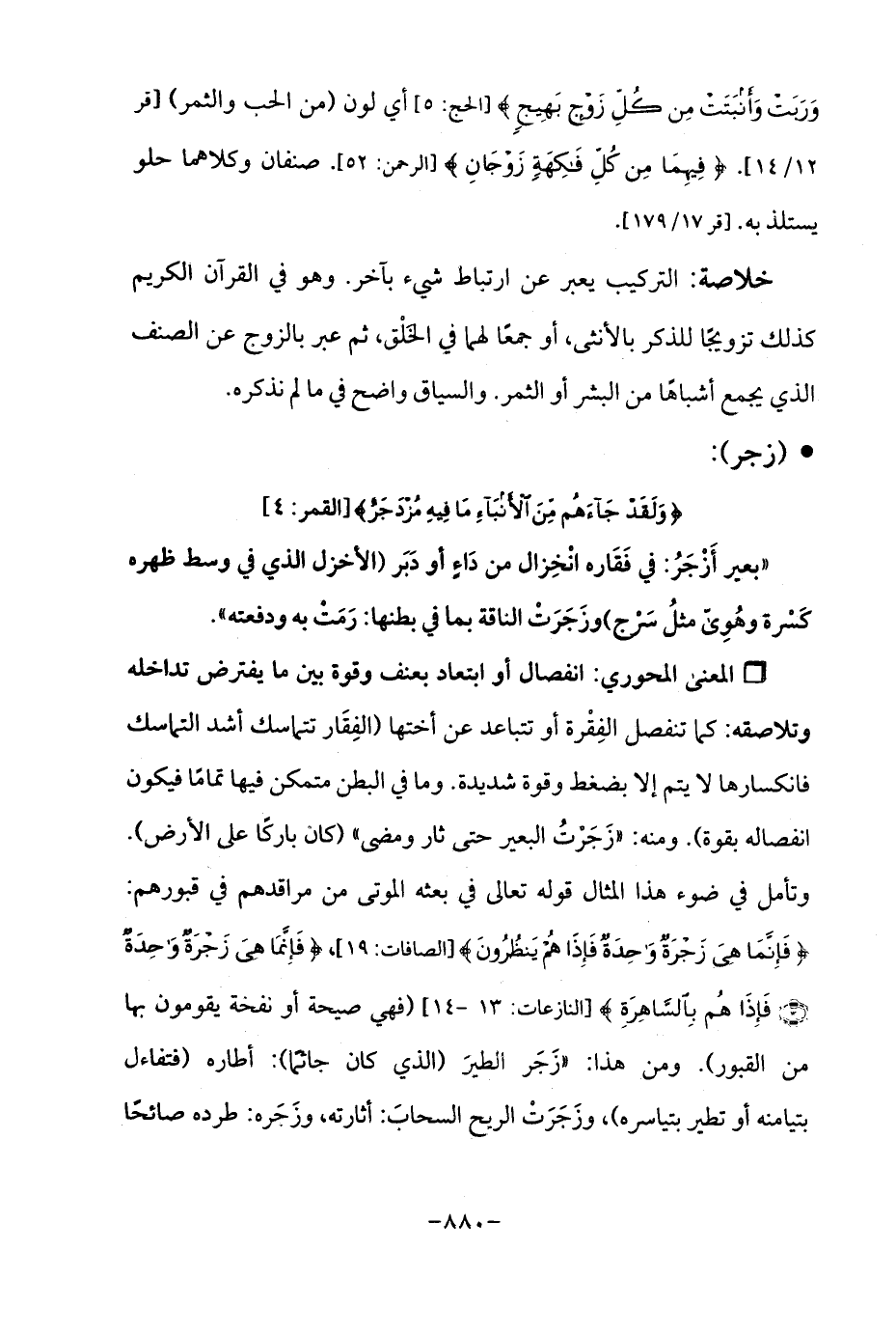 خلاصة: التركيب يعبر عن ارتباط شيء بآخر. وهو في القرآن الكريم كذلك تزويجًا للذكر بالأنثى، أو جمعًا لها في الخَلْق، ثم عبر بالزوج عن الصنف الذي يجمع أشباهًا من البشر أو الثمر. والسياق واضح في ما لم نذكره.