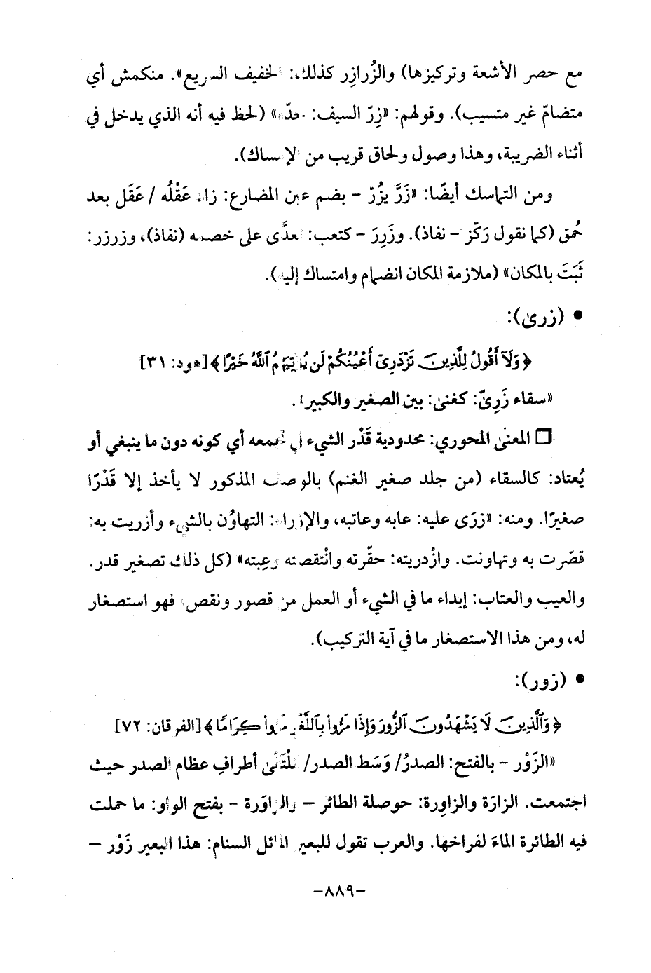 مع حصر الأشعة وتركيزها) والزُرازِر كذلك: الخفيف السريع ". منكمش أي متضامّ غير متسيب). وقولهم: "زِرّ السيف: حدّ " (لحظ فيه أنه الذي يدخل في أثناء الضريبة، وهذا وصول ولحاق قريب من الإمساك).