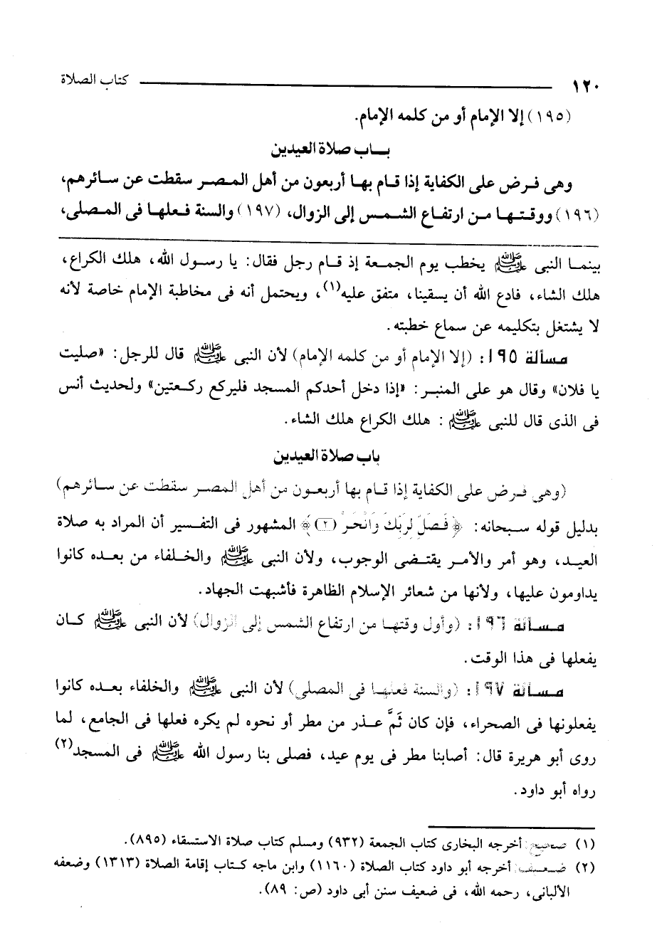 باب صلاة العيدين وهي فرض على الكفاية إذا قام بها أربعون من أهل المصر سقطت عن سائرهم