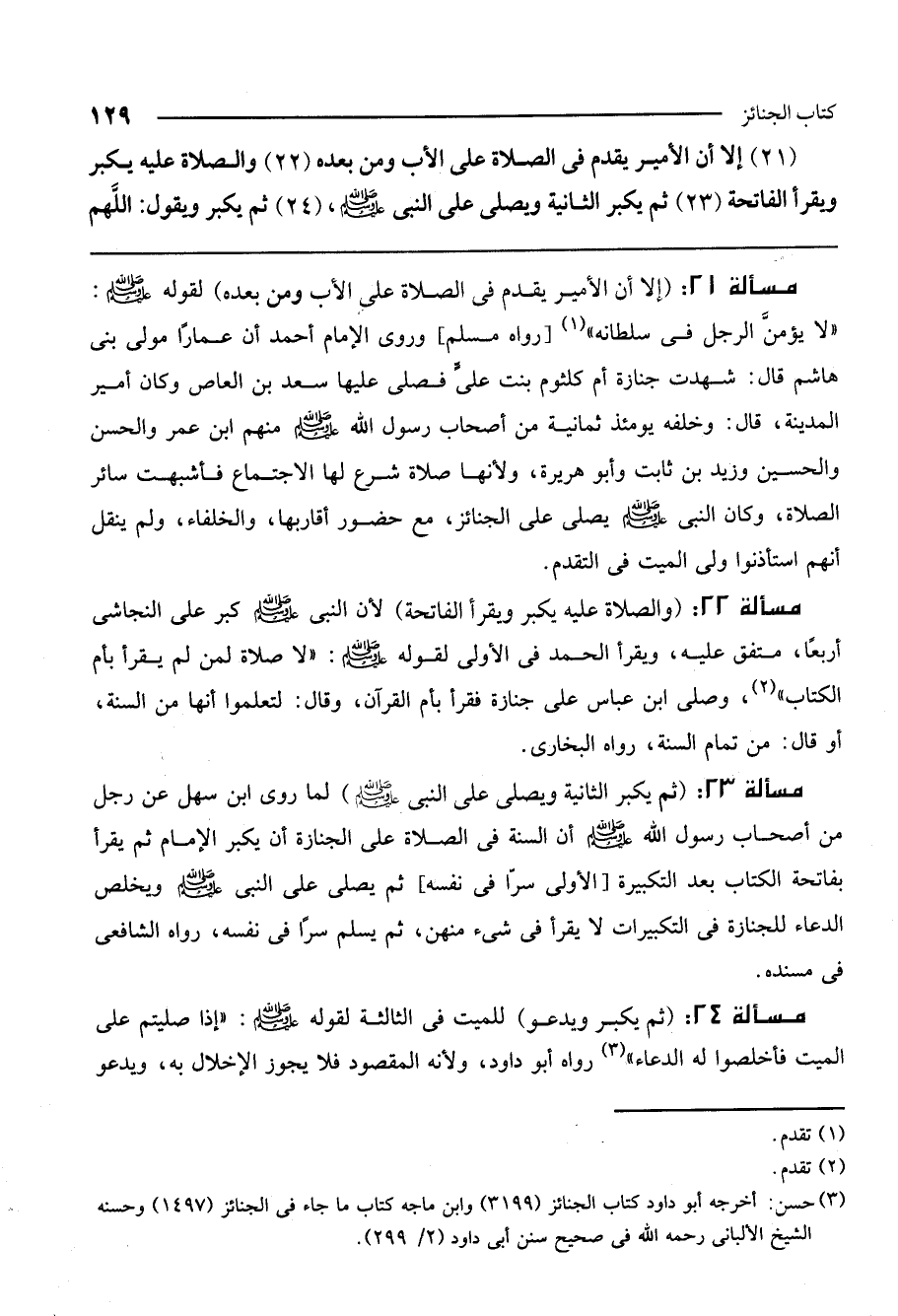 (21) إلا أن الأمير يقدم في الصلاة على الأب ومن بعده